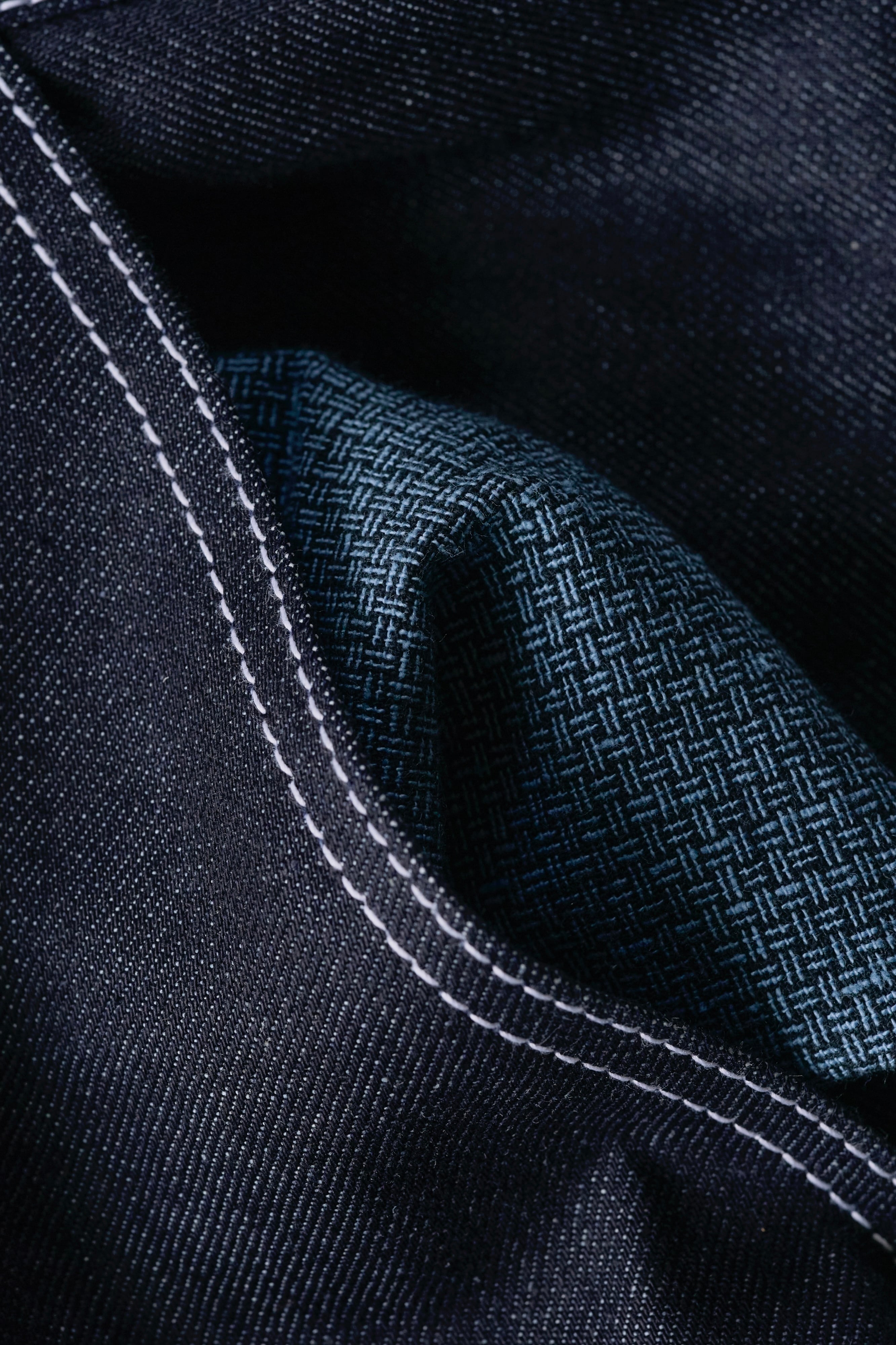 ポケットのスレキ(袋布)には、静岡の伝統的な織物「遠州織物」を採用しました。糸を先に染めてから織り上げる「先染め」の技法により、深みのある色合いと、使い込んでも色褪せない耐久性を実現。デニムが経年変化していくように、ポケットの生地もまた、あなたと共に時間を重ね、味わいを深めていきます。スレキのデザインはランダムとなります。