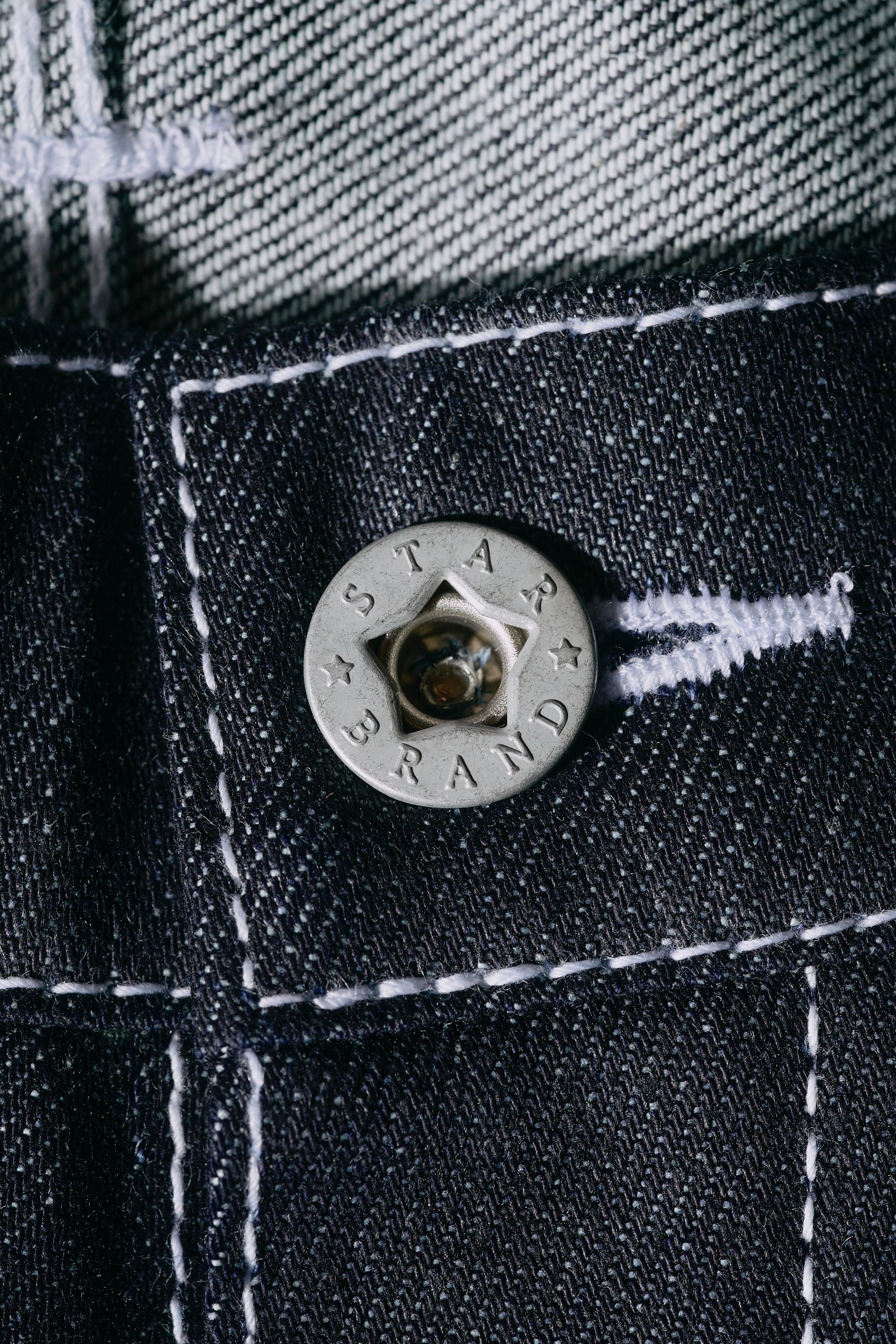 山本被服の歴史が眠る資料庫に、保管されていた一枚の写真が、新たなディテールを生み出すきっかけとなりました。写っていたのは創業当時の社屋と、そこに掲げられた星が描かれた看板。その看板に描かれていたデザインを丁寧に読み解き、ブランドの原点を宿したオリジナルスターブランドボタンを製作しました。