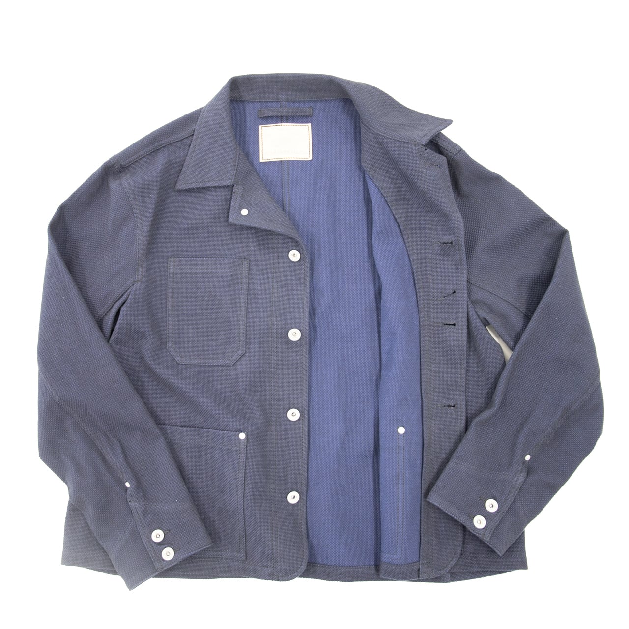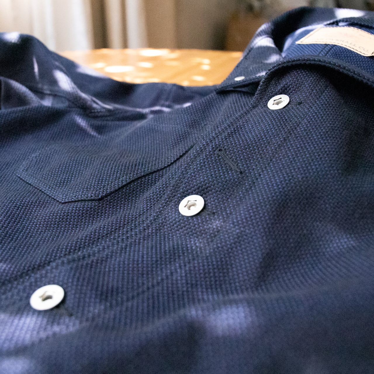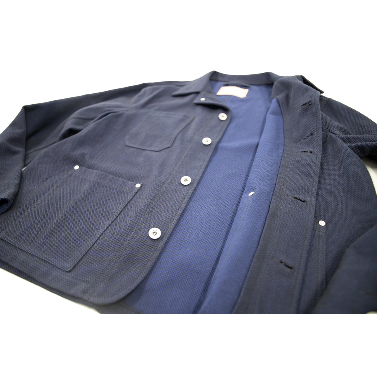 先染め織物の生産を得意としている「榛地(しんち)織物」様に依頼し、着込むほどに味わい深くなる刺し子織りの生地を使用。